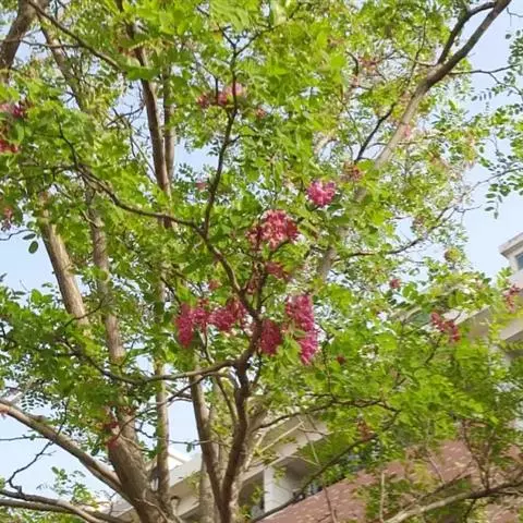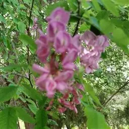 毛洋槐(学名:Robinia hispida L.)是豆科,刺槐属落叶灌木,高1-3米。幼枝密被紫红色硬腺毛及白色曲柔毛,二年生枝密被褐色刚毛,叶轴被刚毛及白色短曲柔毛,上有沟槽,小叶5-7(-8)对,椭圆形、卵形、阔卵形至近圆形。总状花序腋生,花3-8朵,苞片卵状披针形,花萼紫红色,斜钟形,花冠红色至玫瑰红色,花瓣具柄,旗瓣近肾形。雄蕊二体,花药椭圆形,子房近圆柱形,密布腺状突起,沿缝线微被柔毛,柱头顶生,胚珠多数,荚果线形,果颈短,有种子3-5粒。花期5-6月,果期7-10月。
