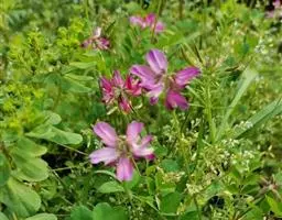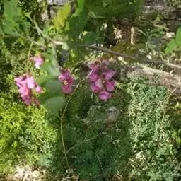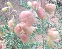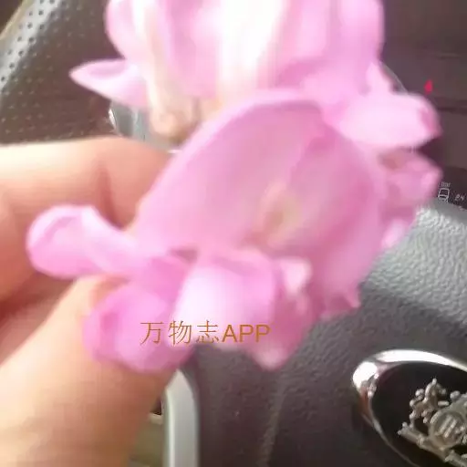 总状花序腋生,除花冠外,均被紫红色腺毛及白色细柔毛,花3-8朵;总花梗长4-8.5厘米;苞片卵状披针形,长5-6毫米,有时上部3裂,先端渐尾尖,早落;花萼紫红色,斜钟形,萼筒长约5毫米,萼齿卵状三角形,长3-6毫米,先端尾尖至钻状;花冠红色至玫瑰红色,花瓣具柄,旗瓣近肾形,长约2厘米,宽约3厘米,先端凹缺,翼瓣镰形;长约2厘米,龙骨瓣近三角形,长约1.5厘米,先端圆,前缘合生,与翼瓣均具耳;雄蕊二体,对旗瓣的1枚分离,花药椭圆形;子房近圆柱形,长约1.5厘米,密布腺状突起,沿缝线微被柔毛,柱头顶生,胚珠多数,荚果线形,长5-8厘米,宽8-12毫米,扁平,密被腺刚毛,先端急尖,果颈短,有种子3-5粒。花期5-6月,果期7-10月。