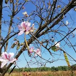 洋紫荆:落叶乔木;树皮暗褐色,近光滑;幼嫩部分常被灰色短柔毛;枝广展,硬而稍呈之字曲折,无毛。叶近…