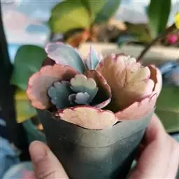 叶形叶色上佳。株型紧凑小巧,似玉片雕琢而成的莲座,多头老株颇有花团锦簇之感,多年生老株伸长的茎干可塑性成为盆景;叶片十分饱满,呈现出朦胧而梦幻的淡粉紫色,优雅中透露着几分可爱。点缀于露台或阳光充足的窗边可起到点睛作用,令人眼前一亮。
