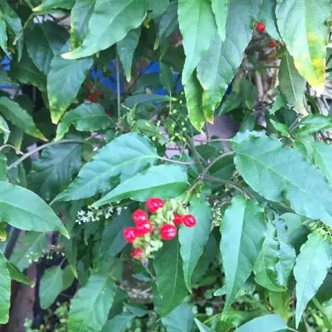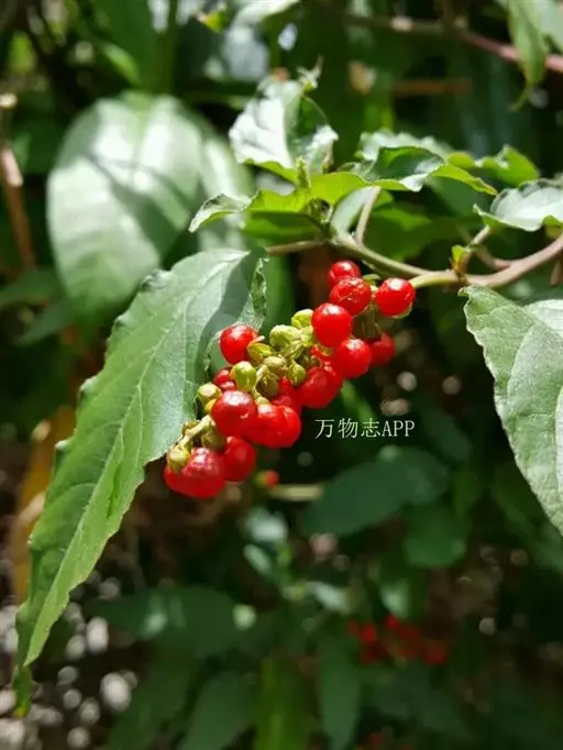 蕾芬,别名数珠珊瑚、小商陆、胭脂草, 半灌木,高30-100厘米。茎直立,枝开展,幼时被短柔毛。