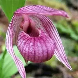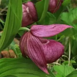 大花杓兰因其形状酷似一个口小肚大的囊袋,又名“大口袋兰”。花体呈紫红色,花朵直径5厘米至6厘米,…