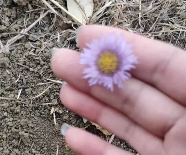 多年生草本。根状茎粗厚,木质,密生多数须根。茎直立,高5-50厘米,中部有少数伞房状分枝,全株被有多细胞的硬短毛或杂有腺毛。叶全缘,两面有粗毛,基生叶密集成莲座状,匙形或倒卵状披针形,长1.5-11厘米,宽0.5-2.5厘米,基部下延成叶柄;茎生叶通常2-4个,矩圆形,长1-4厘米,宽0.5-1厘米,上部叶常缩小成条形的小苞叶,无叶柄。头状花序顶生,通常单个;总苞半球形;总苞片3层,条状披针形;舌状花2-3层,舌片紫色;两性花筒状,黄色。瘦果狭矩圆形,扁;冠毛白色2层,外层极短。