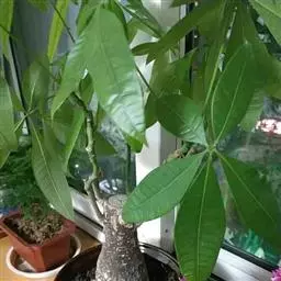 瓜栗 Walp. ),俗称发财树,木棉科小乔木,高4-5米,树冠较松散,幼枝栗褐色,无毛。小叶具…