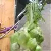 亦作球茎甘蓝,属十字花科,切去底部硬底,削皮,露出的白色部分就是肉;它的味道有点苦,像芥兰;凡属十字花科植物皆有十分强的抗癌防癌物质,而丕蓝因有硬皮在外,更不怕农药残留,不像西兰花、椰菜花叫人怕,可放心食用。