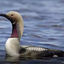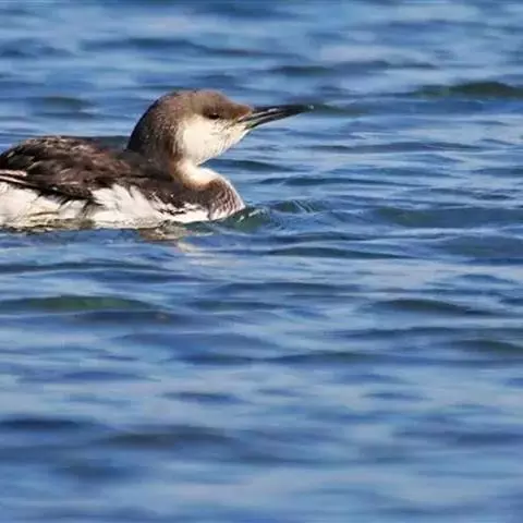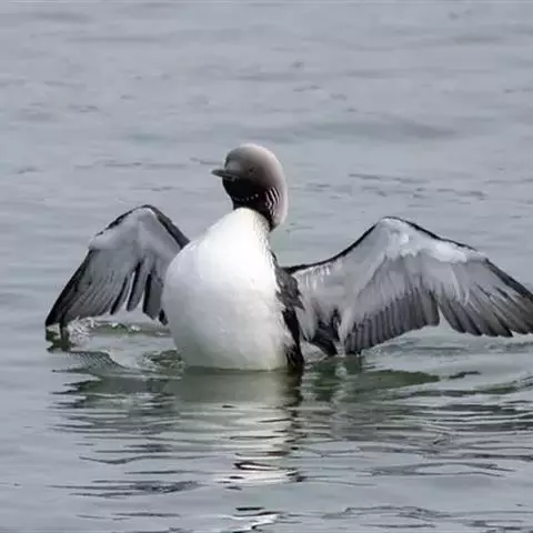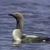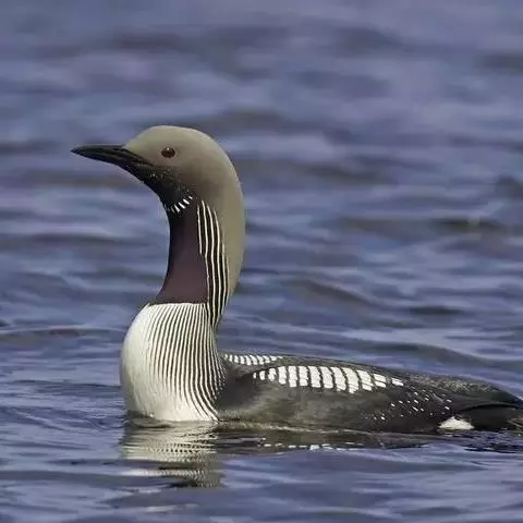 黑喉潜鸟(学名:Gavia arctica)为潜鸟目下的大型水禽,体长56-75厘米,体重雄性3.3-3.8千克,雌性2-3.1千克。个体较红喉潜鸟大,嘴直,颈粗而长,常弯曲成优美的S型。夏羽头顶至后颈灰色;喉及前颈黑色而具绿色金属光泽;颈侧有白色纵纹,下喉具白色斑点组成的横带;背黑色,具长方形白色横斑,两翼具白色细斑点;下体白色,胸侧有黑色细纵纹。冬羽从前额至后颈黑色;颏、喉至前颈白色;胸侧有黑褐色纵纹;两胁有黑斑,后胁白色明显可见。