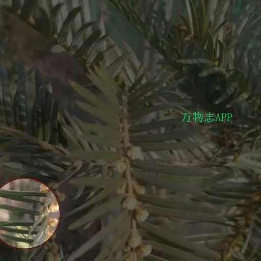 雄球花6-7聚生成头状,径约6毫米,总梗长约3毫米,基部及总梗上有多数苞片,雄球花卵圆形,基部有1枚苞片,雄蕊4-11枚,花丝短,花药2-4(多为3)个。种子通常2-5个着生于轴上,卵圆形、椭圆状卵形或近球形,很少成倒卵状椭圆形,长1.8-2.5厘米,顶端中央有一小尖头。花期3-4月,种子8-10月成熟。