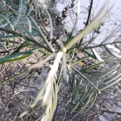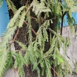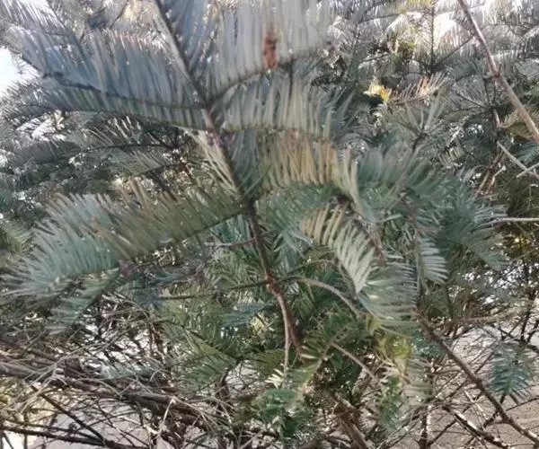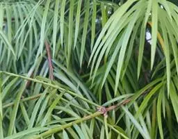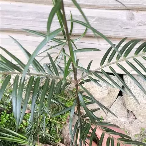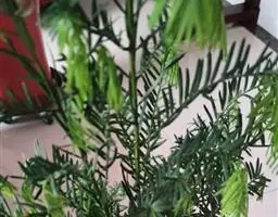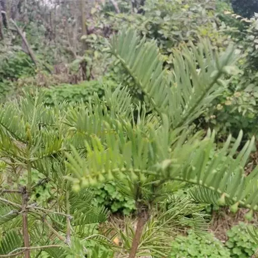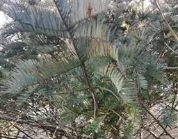 粗榧 灌木或小乔木,高达15米,少为大乔木;树皮灰色或灰褐色,裂成薄片状脱落。叶条形,排列成两列,通常直,稀微弯,长2-5厘米,宽约3毫米,基部近圆形,几无柄,上部通常与中下部等宽或微窄,先端通常渐尖或微凸尖,稀凸尖,上面深绿色,中脉明显,下面有2条白色气孔带,较绿色边带宽2-4倍。