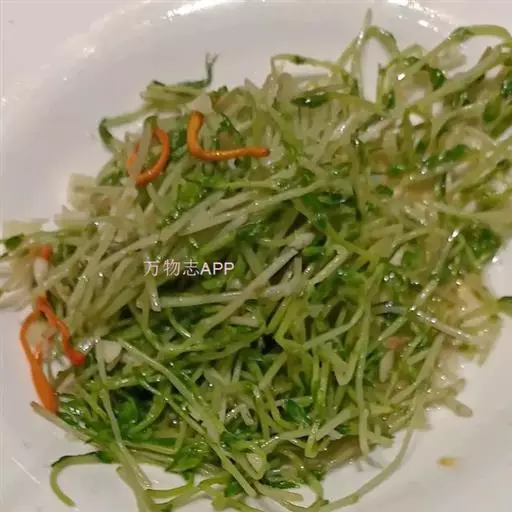 豌豆苗500克 精盐2.5克 味精2克 素油75克