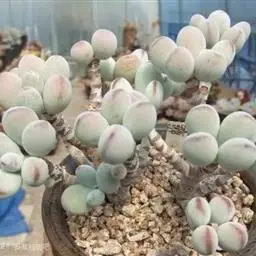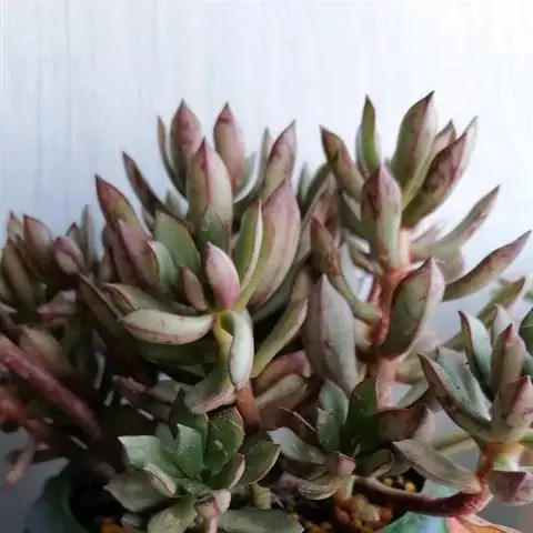 红数珠是景天科青锁龙属植物,叶片对生,叶片长圆型,叶片肥厚。叶片表面有不规则凸起的白色颗粒,…