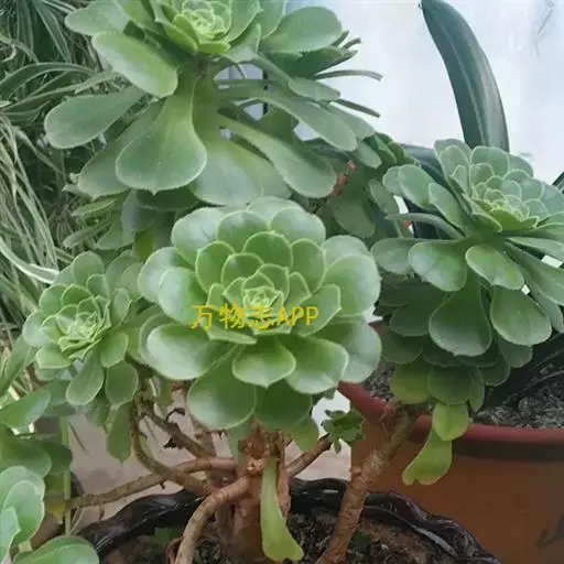 莲花掌(学名:Aeonium arboreum Webb & Berthel.)是景天科莲花掌属植物。为多年生肉质草本,株高可达60厘米,有匍匐茎。根茎粗壮,有多数长丝状气生根。叶丛紧密,直立呈莲座状,叶倒卵形。花梗白叶丛中抽出,花茎柔软,有苞片,具白霜。有8-24朵花,聚伞花序,花茎高20-30厘米,外面粉红色或红色,里面黄色,花冠红色,花瓣披针形不张开,花期6-10月。 [1-2]