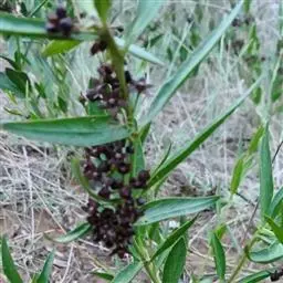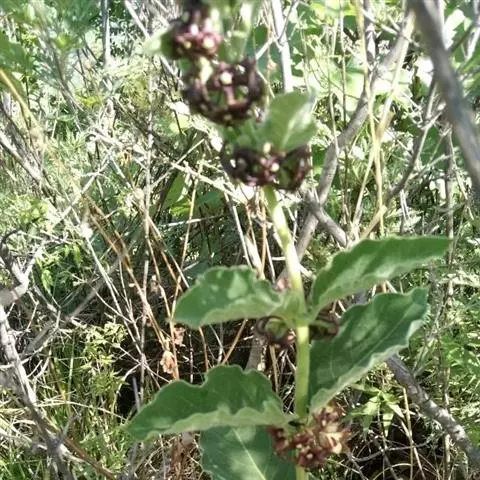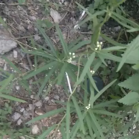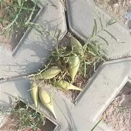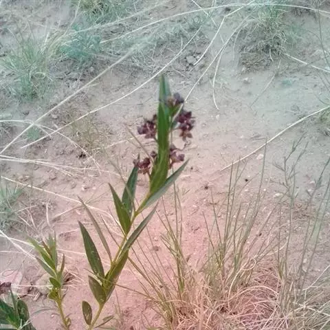 《救荒本草》,卷上,草部,“尖刀儿苗”:“生密县梁家衡山野中,苗高二三尺,叶似细柳叶,更又细长而尖,叶皆两两插茎而生,叶间开淡黄花,细尖角儿,长二寸许,麄如萝卜,角中有白穰及小匾黑子。其叶味甘,采叶煠熟,水洗淘净,油盐调食。”根据上述描写和原书的图形,十分可能就是本种植物。