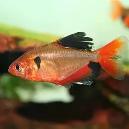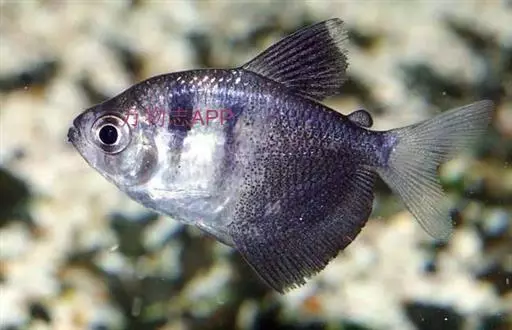 黑裙鱼属脂鲤科,原产南美洲亚马逊河流域、巴西、乌拉圭、玻利维亚及阿根廷等地。黑裙鱼在自然界中长约6-8厘米,水族箱养殖的一般长约3-6厘米,体高,侧扁,近似菱形。臀鳍宽大,脂鳍较小,胸鳍、腹鳍、尾鳍均为白色。