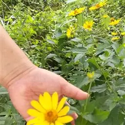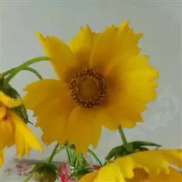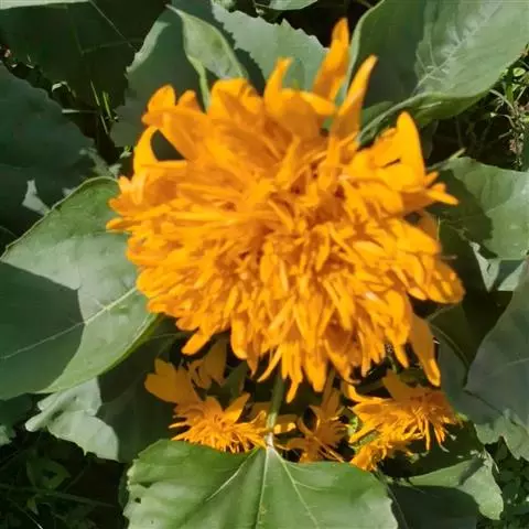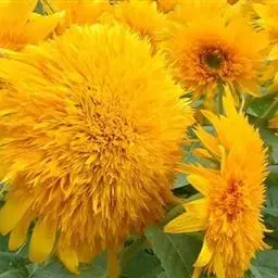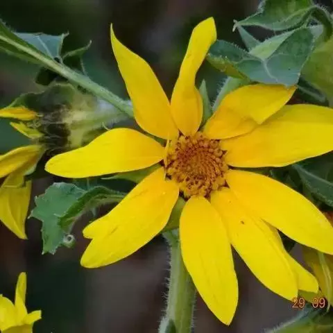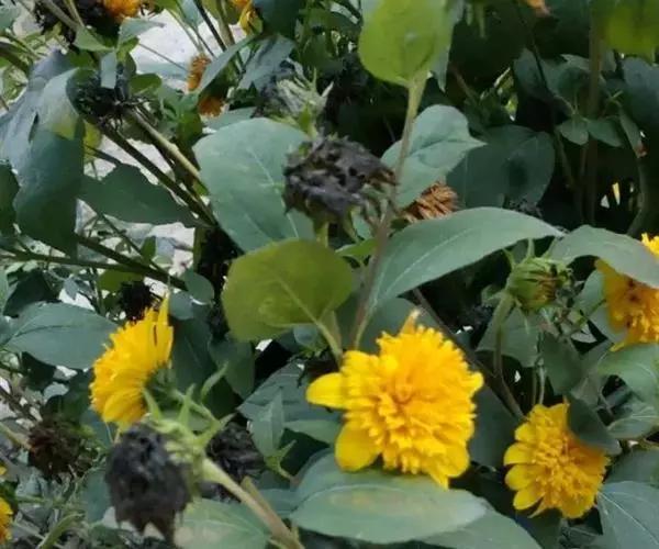 千瓣葵(Helianthus decapetalus Linn.),又名矮生葵花,为菊目向日葵属植物。一年生草本植物,株高30~50cm,叶互生,宽卵形,先端尖,基部心形,头状花序单生于茎顶,重瓣花金黄色,花期7~9月,瘦果灰色或黑色,果熟期9~10月。千瓣葵喜温暖向阳环境,不耐寒,宜于深厚肥沃砂壤土生长,原产北美,现世界各国广为栽培。园林中千瓣葵多用于庭院绿化、布置花坛,也可盆栽观赏。