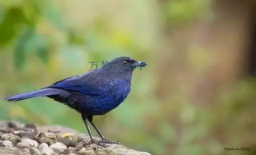 台湾紫啸鸫(学名:Myophonus insularis)全长约280毫米。除胸、腹和翼的覆羽有蓝色光泽外,其余体羽均为紫蓝色。栖于海拔2000米以下的溪流附近。以昆虫、两栖类和鱼类为食。