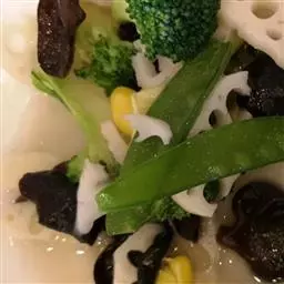 2.海鲜(鱼肉、虾肉、鱿鱼、水发海参)切小件清洗干净,放入开水中氽烫,再用冷水冲凉,和盐。克,糖5克,胡椒粉3克拌匀略腌。