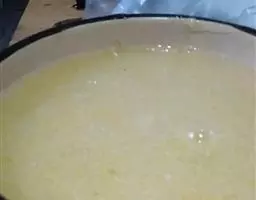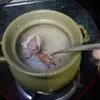 4. 另起锅下猪骨熬水,待锅里水开后下米,最好用煮米饭的米。