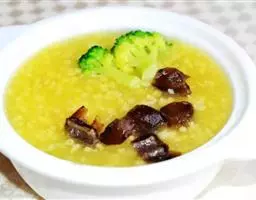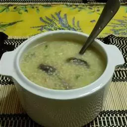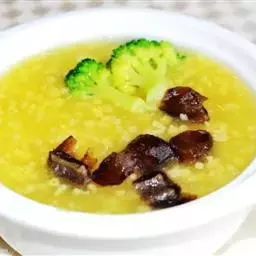 主料:大米 虾仁 干贝 香菇 玉米粒 豌豆粒 辅料:葱 姜 盐 白胡椒粉 香油 做法: 1. 大米用水泡1个小时左右,米粒变白后沥干水,加入少许油拌匀,放入冰箱冷藏 2. 准备好各种配料,香菇和干贝要提前泡软 3. 砂锅中加适量水,烧开后加入冷藏过的大米,放入香菇丝,干贝和姜丝,转小火 4. 米煮软后加入玉米粒,豌豆粒和虾仁,加入少量盐调味 5. 虾仁煮熟即可关火,出锅前加少许葱花,白胡椒粉和香油