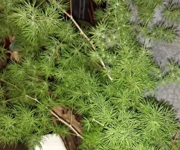 蓬莱松为多年生常绿草本植物。植株直立,高30~60cm,具小块根,多分枝,茎丛生。叶鳞片状或刺状,新叶鲜绿色。花淡红色,花期7~8月。株高1.5m左右,茎直立或稍铺散,木质化呈灌木状。具白色肥大肉质根。小枝纤细,叶呈短松针状,簇生成团,极似五针松叶.新叶翠绿色,老叶深绿色。花白色,浆果黑色。具小块根,有无数丛生茎,多分枝,灰白色,基部木质化,叶片状或刺状。新叶鲜绿色,老叶白粉状。叶状体扁线形,丛生,呈球形,着生于木质化分枝上,墨绿色。花淡红色至白色,有香气,花期7—8月。