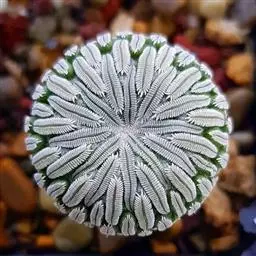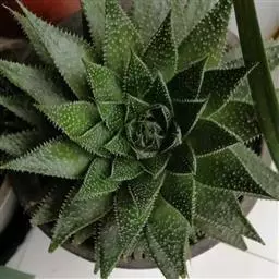 康平寿(Haworthia emelyae var. comptoniana (G.G.Sm.) J.D.Venter & S.A.Hammer)是隶属于阿福花科、瓦苇属的多年生植物,原产南非。多肉植物。植株矮小、无茎。叶短而肥厚,螺旋状生长,呈莲座状排列,半圆柱形,顶端呈水平三角形,截面平而透明,形成特有的「窗」状结构,窗上有明显脉纹。花葶细长,小花白色、筒状。