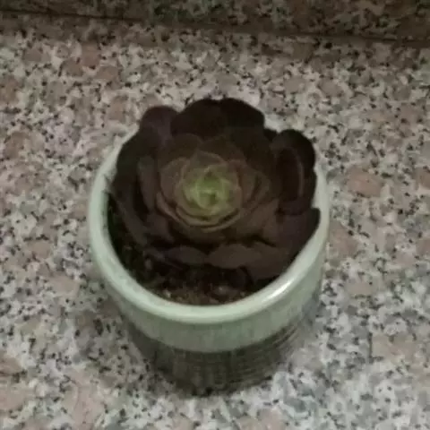 植株无茎,肉质叶排成莲座状,叶色深绿或褐绿色,先端卵圆状三角形,有浅色网格状脉纹,叶缘有细齿 。
