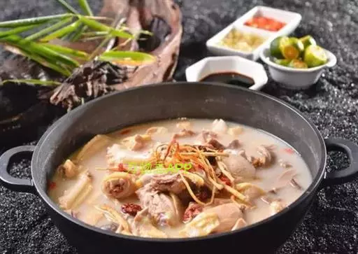 据《本草纲目》记载,胡椒有温中下气、和胃、止呕功效。用上等胡椒煲猪肚,加上上等靓扇鸡,精制成美味浓汤食用。胡椒猪肚鸡火锅主要针对中气不足、食欲不振、消化不良、虚寒、胃痛、酒毒伤胃等,具有行气、健脾、暖胃、养胃、散寒、止胃痛和排毒的功效。