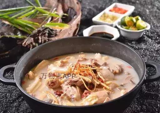 猪肚包鸡 猪肚为猪科动物猪的胃。猪肚含有蛋白质、脂肪、碳水化合物、维生素及钙、磷、铁等,具有补虚损、健脾胃的功效,适用于气血虚损、身体瘦弱者食用。