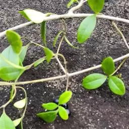 金香藤常绿缠绕性蔓性藤本,茎缠绕性,具白色体液;叶对生,椭圆形,先端圆或微突,全缘,革质,明亮富光泽。