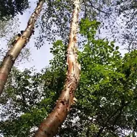 亮叶桦是桦木科桦木属的高大乔木植物。株高可达25米;树皮光滑;幼枝密被黄色柔毛及稀疏树脂腺体;叶卵状椭圆形、长圆形或长圆状披针形,先端渐尖或尾尖,基部圆、近心形或宽楔形,幼时密被柔毛,下面密被树脂腺点,具不规则刺毛状重锯齿,叶柄密被长柔毛及树脂腺体;雌花序单生,细长圆柱形,密被柔毛及树脂腺体;果苞中裂片长圆形或披针形,小坚果倒卵形,疏被柔毛;花期3月下旬至4月上旬;果期5月至6月上旬。亮叶桦分布于中国云南、贵州、四川、陕西、甘肃、湖北、江西、浙江、广东、广西等省地,常生于海拔500-2500米之阳坡杂木林内。其喜温暖湿润的气候环境,较耐阴、耐干燥贫瘠,适宜在深厚肥沃、光照充足的酸性沙壤土上生长。繁殖方式一般为种子繁殖。亮叶桦的根、皮、叶都可入药,味甘、辛,性凉,归肾、胃、心、膀胱经,具有清热利尿、解毒、祛湿散寒、消滞中和等功效,可用