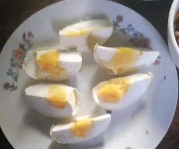 咸鸭蛋 剥蛋壳就是煮熟后剥开蛋壳,质量上乘的咸鸭蛋黄白分明,蛋白洁白凝炼,咸味适中,油多味美,用筷子一挑便有黄油冒出,蛋黄质地细沙,分为一层一层的,由浅至深,越往蛋心越红,中间无硬心,味道鲜美;而质量差的咸鸭蛋蛋白较烂、腐腻、咸味较大,最好不要食用。