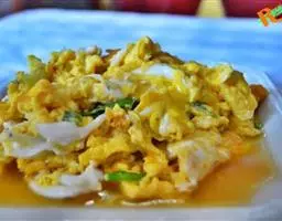 茉莉花炒蛋是一道由茉莉花、鸡蛋、白酒等做成的美食。