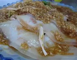 1.将猪肉剁烂,加入精盐、味粉、生粉拌匀,搅至起胶,再加入咸蛋白、花生油、拌匀后放在碟上铺匀。