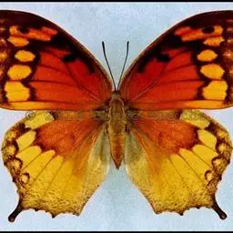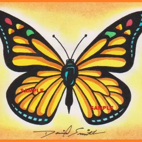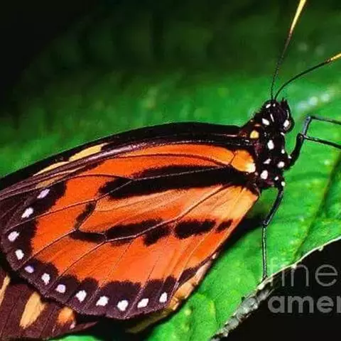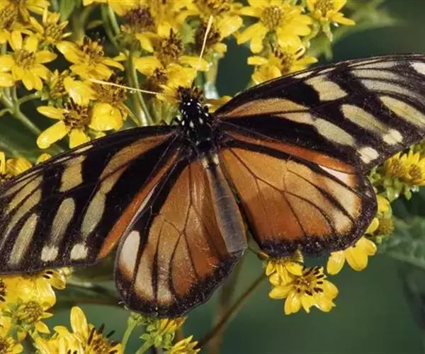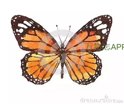 黑脉金斑蝶:翅阔8.6-12.4厘米。雄蝶较雌蝶为大。成年蝶颜色鲜艳,翅膀上有显眼的橙色及黑色斑纹…