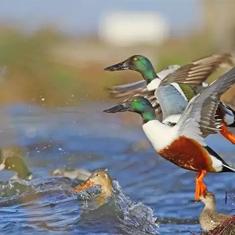 绿头鸭属游禽,大型鸭类。体长47-62厘米,体重大约1千克,外形大小和家鸭相似。雄鸟嘴黄绿色,脚橙…