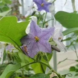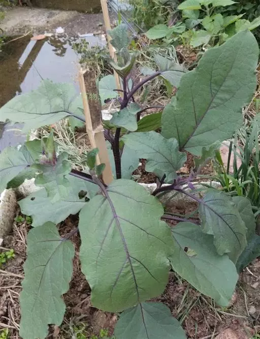 ⑶剪枝:茄子是双杈分枝作物,一般双干整枝,即对茄以上留两个枝条,每枝留一个茄,每层留两个茄。每级发出的侧枝在茄子长到一半大时留2-3片叶摘心。