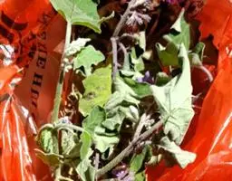 ⒊茄子还含磷、钙、钾等微量元素和胆碱、胡芦巴碱、水苏碱、龙葵碱等多种生物碱。尤其是紫色茄子中维生素含量更高。可以抑制消化道肿瘤细胞的增值。