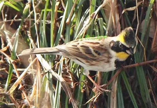 黄喉鹀(学名:Emberiza elegans):属鸟纲、鹀科的小型鸣禽,体长约15厘米。喙为圆锥形,与雀科的鸟类相比较为细弱,上下喙边缘不紧密切合而微向内弯,因而切合线中略有缝隙;雄鸟有一短而竖直的黑色羽冠,眉纹自额至枕侧长而宽阔,前段为黄白色、后段为鲜黄色。背栗红色或暗栗色,颏黑色,上喉黄色,下喉白色,胸有一半月形黑斑,其余下体白色或灰白色。雌鸟和雄鸟大致相似,但羽色较淡,头部黑色转为褐色,前胸黑色半月形斑不明显或消失。