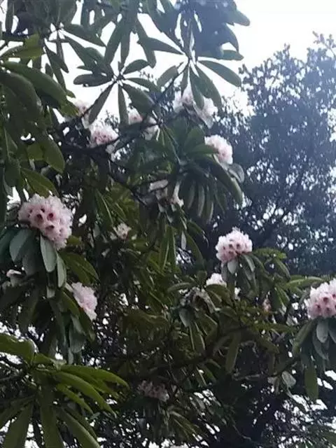 团叶杜鹃:常绿灌木,稀小乔木,高1-4.5米,稀达15米;树皮褐色;幼枝绿色,无毛,老枝黄褐色。顶…