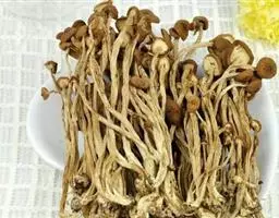 把鲜金针菇晒干或烘干至含水量10%~12%。晒干的金针菇色较深,不耐久藏。烘干的金针菇色泽好,质量高,但成本高,耐久藏。
