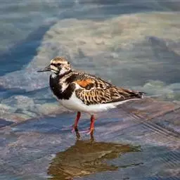 翻石鹬:体重82-135克,体长180-240毫米。体型高矮兼称,看起来十分的滑稽。…