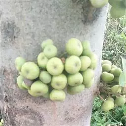 小叶榕果实偏球形,果色多样,以红色居多。挂果期较短,小叶榕徒长速度快,消耗营养多,对其塑形、定型有一定影响,其根系发达,萌生力强,适宜盆景提根栽培。