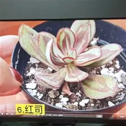 松果红爪 植株直立,株高20厘米以内,成株呈塔状或松果。叶排列呈莲座状,叶片长匙形,肉质,被白霜,具明显的短叶尖,呈暗紫红色,叶片不易晒红。紫红色的花茎抽出自叶腋,总状花序,小花钟形,花瓣5,花瓣背部橙红色,花瓣内部相对背部偏黄。可采用叶插和播种繁殖栽培,性喜光照充足、温暖、干燥的生长环境。