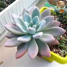 蓝石莲是景天科、拟石莲花属的多肉植物。茎部粗壮,成熟植株茎部木质化。叶片莲座型密集排列,株径不会很大,…