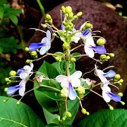 烟火树 Merr.)是唇形科、大青属常绿灌木或小乔木,株高可达4米。幼枝方形,墨绿色。叶对生,…