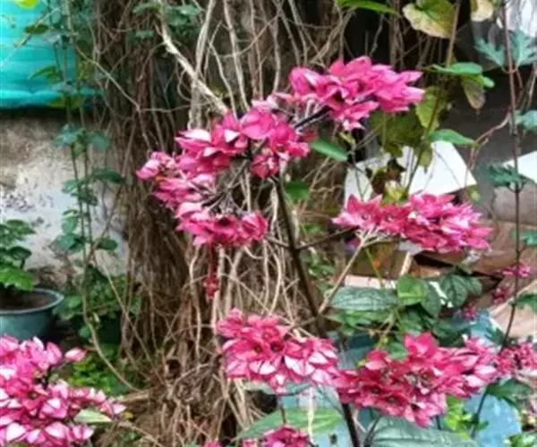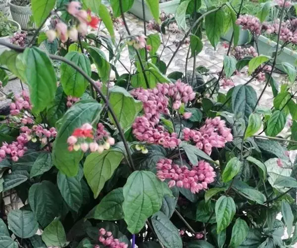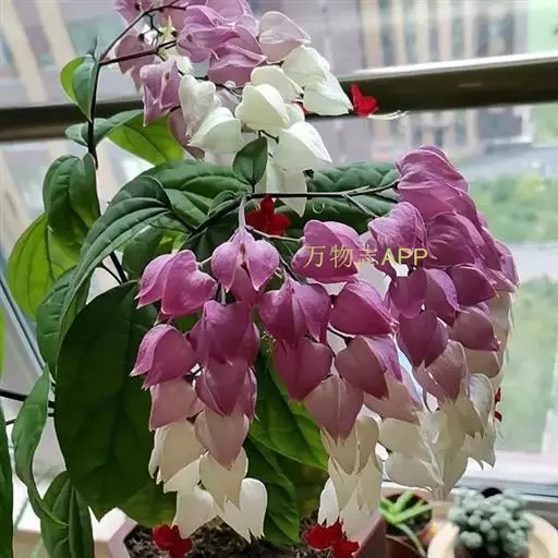 该种为美丽的观赏植物,开花时深红色的花冠由白色的萼内伸出,状如吐珠。 花形奇特、开花繁茂,其花皆属苞片组成的棱形花萼,像一个个奶白色的“杨桃仔”,在它尖端的裂口间,吐出五根绛红的花儿,疏密匀称地布满在叶片之上,如同把蕴藏生命之火的红珠,吐完一颗又一颗。一般盆栽因受剪枝的限制,植株长得很矮。主要用于温室栽培观赏,可做花架,也有作盆栽点缀窗台和夏季小庭院,与供公园或旅游基地砌作花篮、拱门、凉亭和各种图案等造型,为游客增添雅兴。
