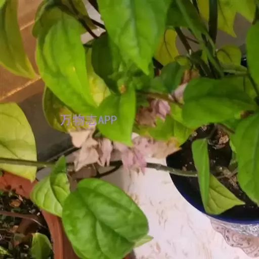 龙吐珠属马鞭草科,会生叶斑病,是半知菌感染所致。起初只是一个个小褐点儿,如不及时治疗会产生大片的黑斑,叶片枯黄死掉。所以,一旦发现生病,应立即用百菌清800倍液,进行叶面喷雾,隔7-8天一次,连续2-3次,可基本痊愈。