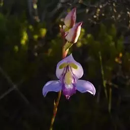 独花兰(学名:Changnienia amoena S. S. Chien)是兰科、独花兰属的国家二级保护植物 ,也是中国的特有物种 。假鳞茎近椭圆形或宽卵球形,长1.5-2.5厘米,宽1-2厘米,肉质,近淡黄白色,有2节,被膜质鞘。叶1枚,宽卵状椭圆形至宽椭圆形,背面紫红色。花葶长10-17厘米,紫色,具2枚鞘;鞘膜质,下部抱茎;花大,白色而带肉红色或淡紫色晕,唇瓣有紫红色斑点;萼片长圆状披针形;花瓣狭倒卵状披针形,略斜歪,长2.5-3厘米,宽1.2-1.4厘米,先端钝,具7脉;唇瓣略短于花瓣,3裂。花期4月。