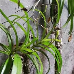 大序隔距兰 Garay):茎直立,扁圆柱形,伸长,达20余厘米,通常粗5-8毫米,被叶鞘所包,…
