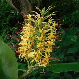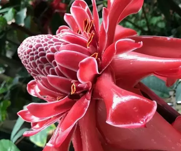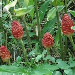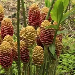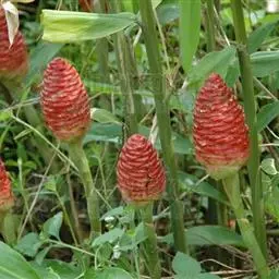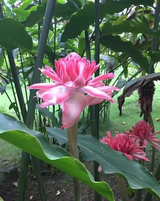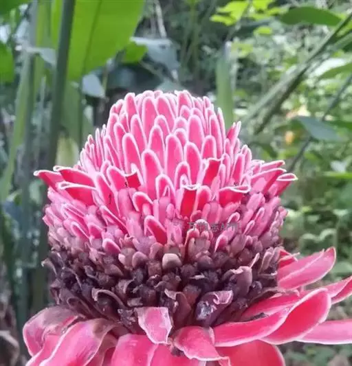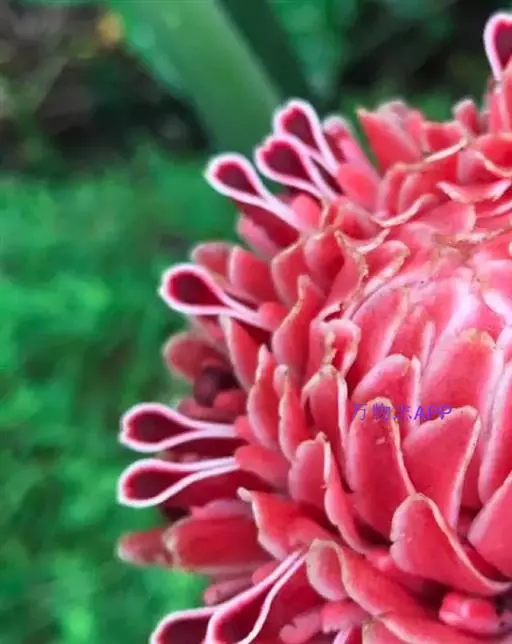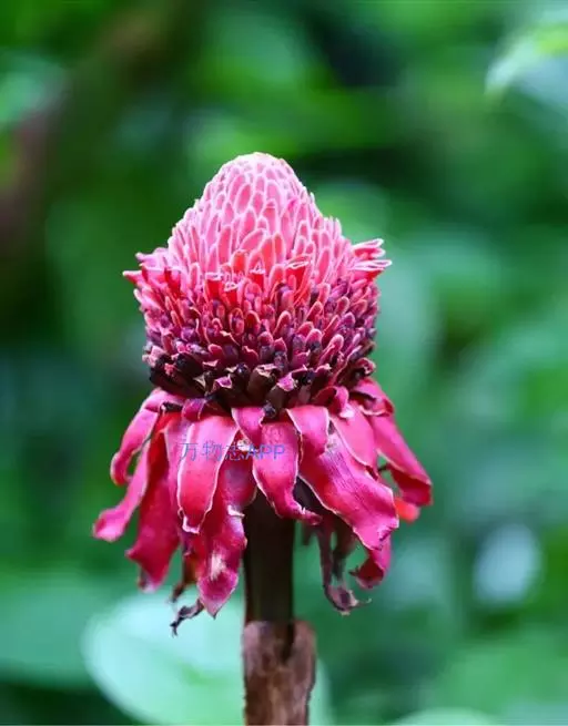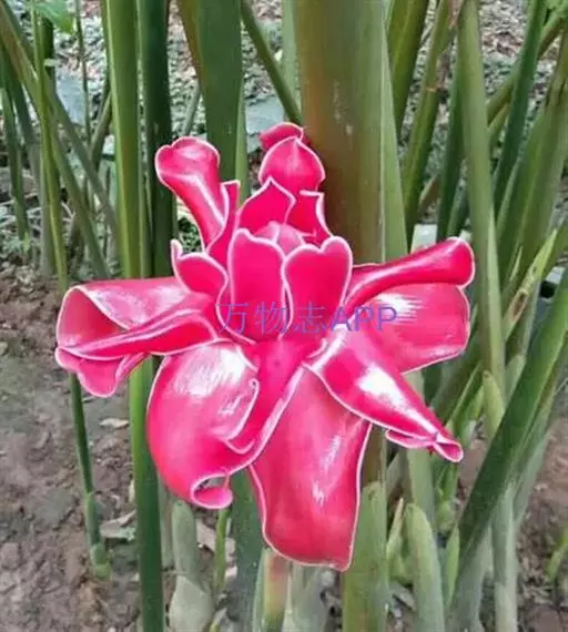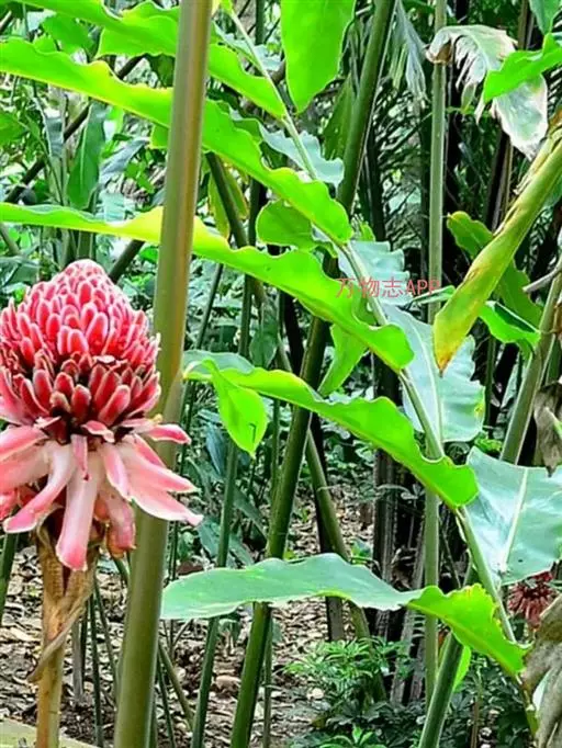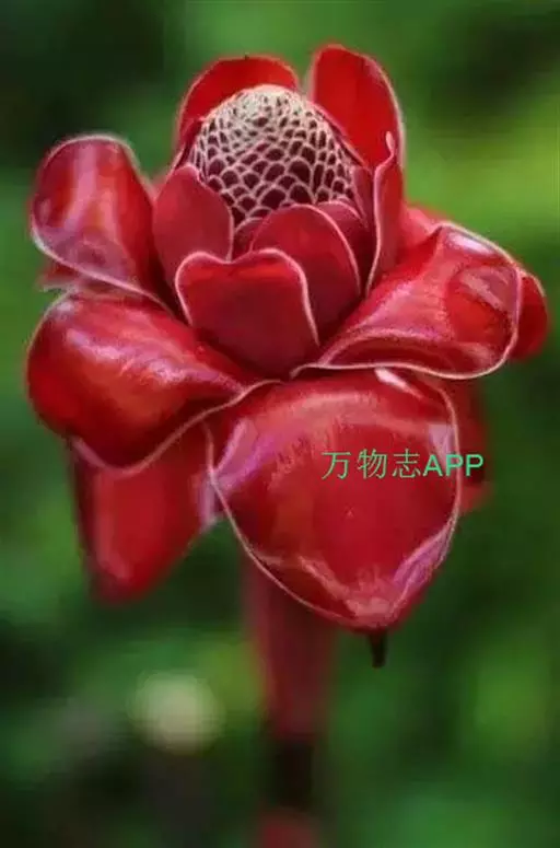 姜科。直立强壮草本, 高达5m。原产马来西亚,云南引种栽培。花期4~6月。本种花序极美丽,苞片发瓷质亮光,故得名。