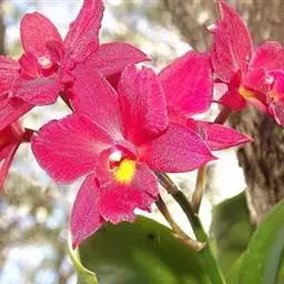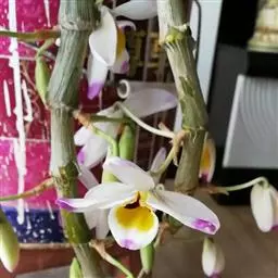 红花隔距兰(学名:Cleisostoma williamsonii (Rchb. f.) Garay):植株通常悬垂。茎细圆柱形,长达70厘米,粗3-4毫米,分枝或不分枝,具多数互生的叶,节间长1-2.5厘米。叶肉质,圆柱形,伸直或稍弧曲。花序侧生,斜出,比叶长,通常分枝;花粉红色,开放;花瓣长圆形,长2.2毫米,宽1毫米,先端钝,具1条脉;唇瓣深紫红色,3裂。花期4-6月。
